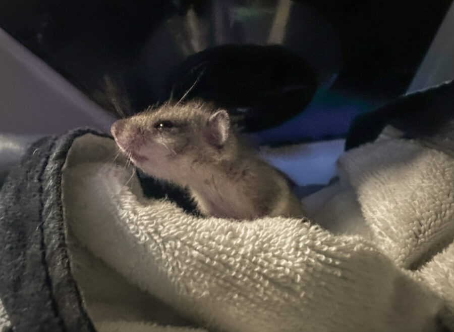 Am späten Abend des 28.09.2025, gegen 23:30 Uhr, erreichte der Tiernotruf Saarland e.V. ein Anruf von der Bundespolizei Koblenz. Die Beamten hatten in Kleinblittersdorf am alten Zoll einen jungen Siebenschläfer entdeckt, der torkelnd auf der Straße unterwegs war. Umgehend sicherten sie das Tier und kontaktierten den Tiernotruf zur Übernahme. Sofort begab sich ein Teammitglied des Tiernotrufs nach Kleinblittersdorf. Vor Ort zeigte sich, dass die Beamten den kleinen Siebenschläfer vorbildlich warm gehalten und gut betreut hatten. Der Kleine wurde sorgsam übergeben und durfte seine Weiterfahrt an einem besonders gemütlichen Ort antreten: in der Brusttasche der Einsatzjacke – ausgepolstert mit wärmendem Fleece, eine ideale Lösung für das kleine „Monster“.